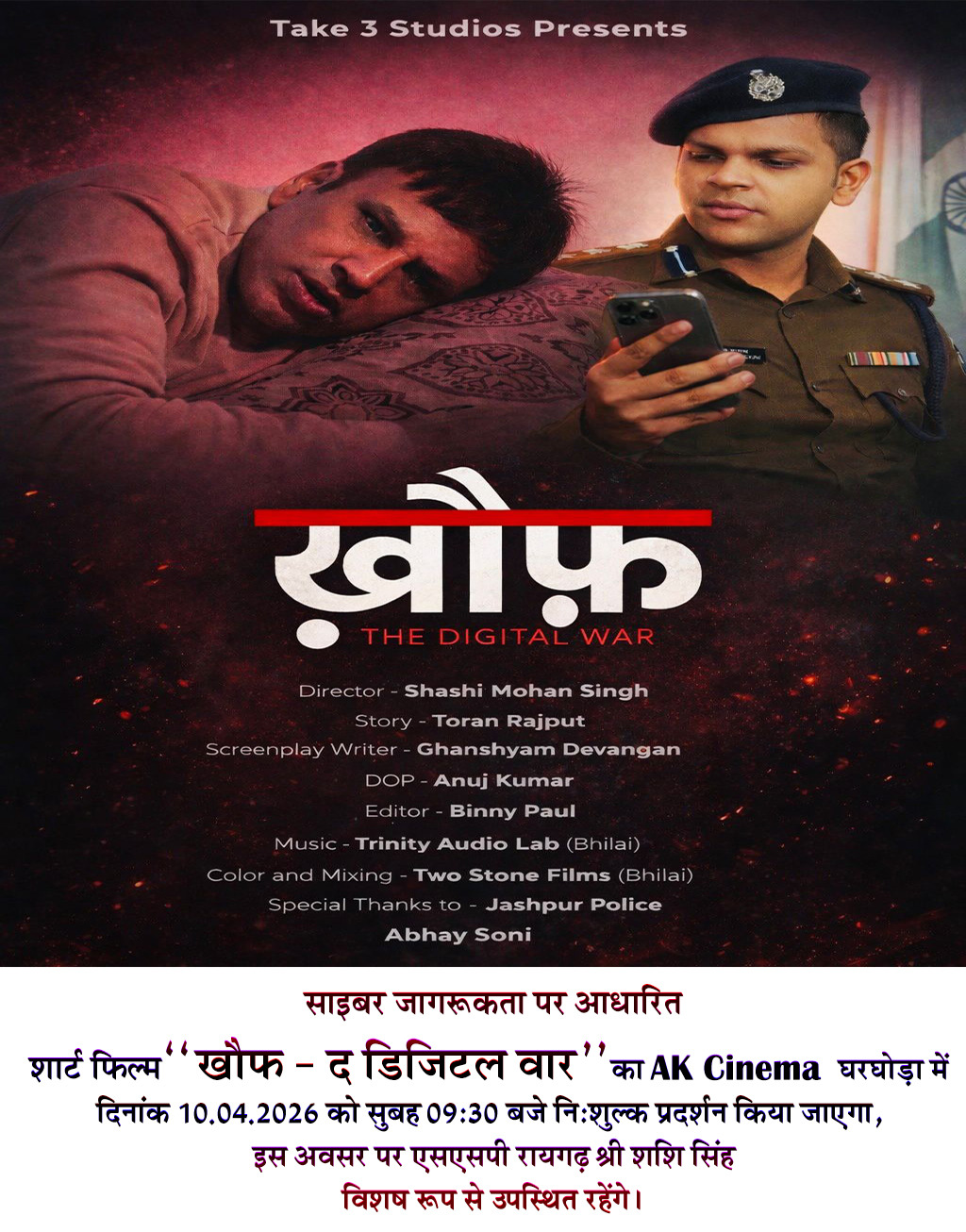 डिजिटल खतरे पर सिनेमाई वार: रायगढ़ में ‘ख़ौफ़’ के जरिए साइबर जागरूकता की नई पहल रायगढ़ मोबाइल स्क्रीन की दुनिया…