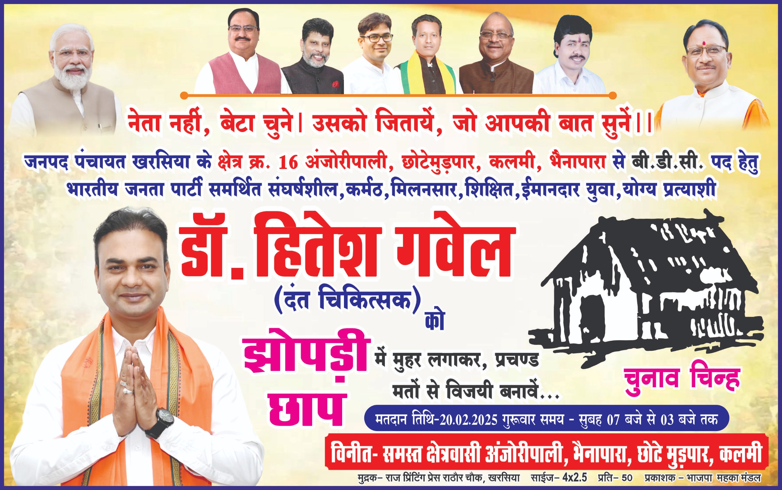1. जनपद पंचायत क्षेत्र क्र. 16 (अंजोरीपाली, छोटेमुड़पार, भैनापारा, कलमी) में किसी भी जरूरतमनद परिवार में शादी या स्वर्गवास होने…
