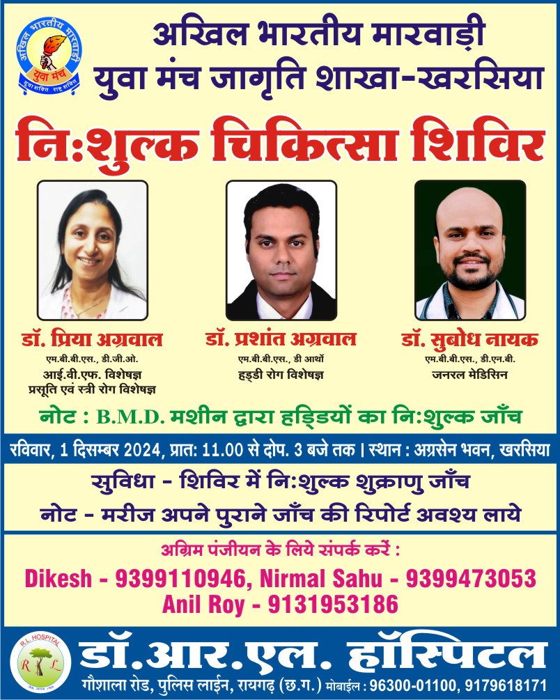 खरसिया दिनांक 1/12/24 को खरसिया नगर में स्थानीय अग्रसेन भवन में अखिल भारतीय मारवाड़ी युवा मंच की महिला( जागृति) शाखा…
