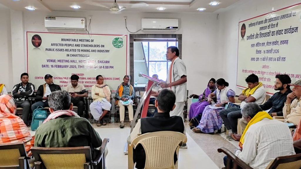 सामाजिक चिंतकों ने सुझाव दिया कि उद्योग-प्रशासन-समुदाय के बीच नियमित संवाद तंत्र स्थापित हो, ग्राम सभाओं को सशक्त बनाया जाए और पर्यावरणीय नियमों के कड़ाई से पालन की निगरानी सुनिश्चित की जाए।परिचर्चा का आयोजन सेंटर फॉर द सस्टेनेबल यूज़ ऑफ़ नेचुरल एंड सोशल रिसोर्सेज (सीएसएनआर), मुनादी डॉट कॉम तथा आदिवासी दलित मजदूर किसान संघर्ष, रायगढ़ (छत्तीसगढ़) के संयुक्त तत्वावधान में किया गया।