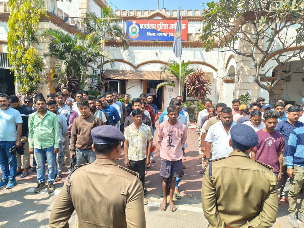 रायगढ़ पुलिस कार्यालय में 100 से अधिक निगरानी, गुंडा और आदतन बदमाशों की परेड