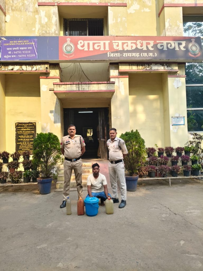 इसी तरह चक्रधरनगर पुलिस ने ग्राम जामगांव जुनाडीह में रेड कार्रवाई कर जितेश मिरधा (31) के घर से 22 लीटर महुआ शराब बरामद की। पुलिस के मुताबिक आरोपी अवैध बिक्री के लिए शराब छिपाकर रखा हुआ था।