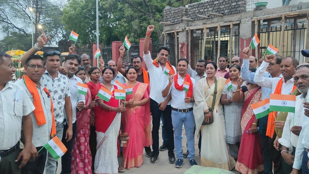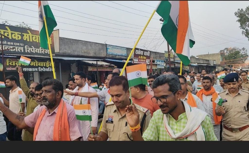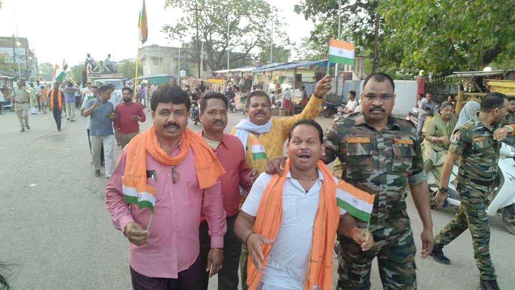 बता दे कि ऑपरेशन सिंदूर के तहत भारतीय सेना के अदम्य साहस पराक्रम को पूरा देश नमन कर रहा है और पूरे देश में तिरंगा यात्रा निकाली जा रही है इसी के तहत आज खरसिया सिटी थाना से आरंभ हो कर ये तिरंगा यात्रा पूरे नगर भ्रमण करते हुए भारत माता के जयकारे और जोश भरे नारों के साथ झूमते गाते नगर के प्रमुख चौक चौराहों से होते हुए वापस सिटी थाने तक पहुंचे । देश भक्ति में सराबोर आज की इस तिरंगा यात्रा में राजनीति से ऊपर उठ कर सभी ने केवल देश भक्त होने की जिम्मेदारी को निभाया और सब के साथ सिर्फ भारत माता के जयकारे करते हुए देश की सेना को नमन किया।