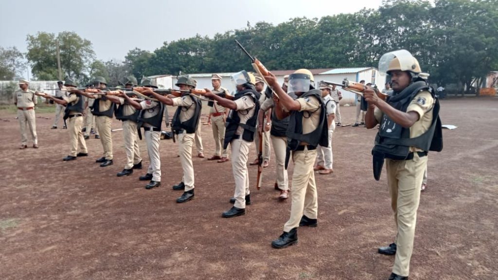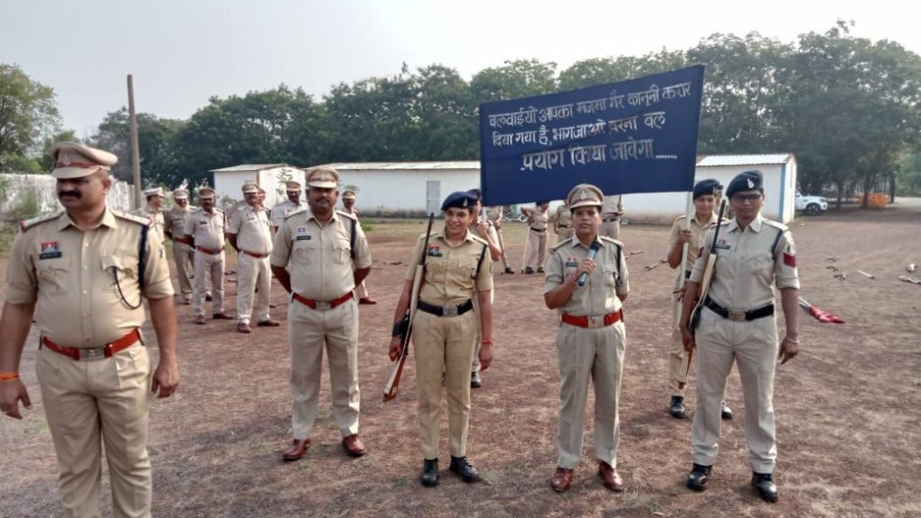 ⏩ परेड समाप्ति उपरांत पुलिस अधीक्षक द्वारा अधि/कर्म. को कानून सुरक्षा व्यवस्था ड्यूटी में आवश्यक जानकारियां देते हुए बलवा ड्रिल का अभ्यास कराया गया।