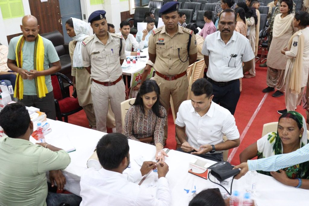 पुलिस महानिदेशक अरुण देव गौतम (भा पु से), के संवेदनशीलता और निर्देशन में तथा पुलिस महानिरीक्षक सरगुजा रेंज श्री दीपक झा (भा पु से) और पुलिस अधीक्षक वैभव बेंकर (भा पु से) के मार्गदर्शन में आज दिनांक 08-6-25 को ऑडिटोरियम हॉल साप्ताहिक बाज़ार बलरामपुर में पुलिस विभाग, नगर सेना और छत्तीसगढ़ सशस्त्र बल में कार्यरत अधिकारी/कर्मचारी, सेवानिवृत्ति अधिकारी कर्मचारी व पुलिस परिवार , शहीद परिवार जनों के बेसिक सुविधा जैसे स्वास्थ्य परीक्षण, नेत्र परीक्षण, मानसिक रोग, स्त्री रोग , ब्लड प्रेशर , शुगर इत्यादि की जांच व छत्तीसगढ़ शासन द्वारा प्रदाय विभिन्न शासकीय महत्वपूर्ण योजना जैसे राशन कार्ड, आयुष्मान कार्ड, लर्निंग लाइसेंस, आधार कार्ड, एचएसआरपी नंबर प्लेट इत्यादि के संबंध में संबंधित विभागों से समन्वय स्थापित कर एक ही छत के नीचे सुविधा देने के उद्देश्य से पुलिस अधीक्षक महोदय जिला बलरामपुर रामानुजगंज के पहल पर ऑडिटोरियम भवन बलरामपुर में समस्त विभागों द्वारा स्टॉल लगाया गया । जिसमे पुलिस जिला बल, सीएएफ, नगर सैनिक बल, सेवानिवृत पुलिस अधिकारी कर्मचारी व पुलिस परिवार के बुजुर्ग, महिलाएं एवं बच्चों द्वारा सर्वप्रथम रजिस्ट्रेसन कराते हुए अपनी आवश्यकता अनुसार विभिन्न शासकीय सुविधाओं का लाभ लिया गया। जिसमे कुल 125 पुलिस परिवार द्वारा उक्त कार्यक्रम का लाभ लिया गया ।