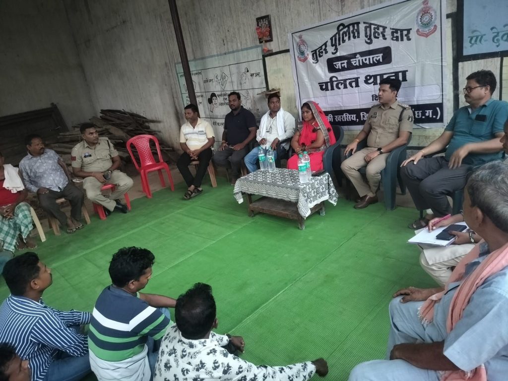 इसी क्रम में चौकी प्रभारी खरसिया निरीक्षक अमित तिवारी ने आज अपने थाना स्टाफ के साथ *ग्राम मोहापाली * में “पुलिस जन चौपाल” का आयोजन कर ग्रामीणों से सीधा संवाद किया। इस चौपाल में ग्रामीणों से उनकी स्थानीय समस्याएं, सामाजिक विवाद, और नशे के प्रभाव जैसे मुद्दों पर गहन चर्चा की गई।
