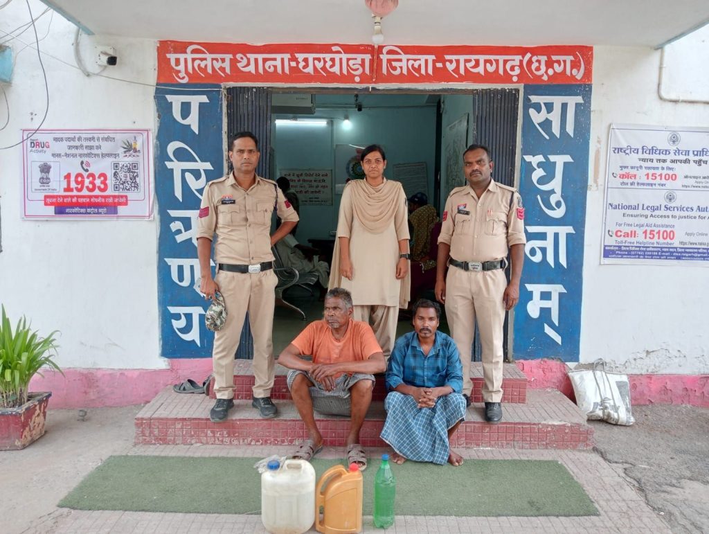 छाल पुलिस ने लात पुनर्वास क्षेत्र से मुरली साहु के पास से 6 लीटर शराब (₹600) जब्त की साथ ही जूटमिल पुलिस ने चुन्नु लाल सारथी (ग्राम तरकेला) के पास से 8 लीटर कच्ची शराब (₹800) बरामद की।