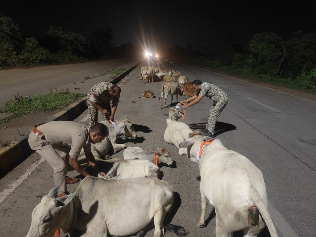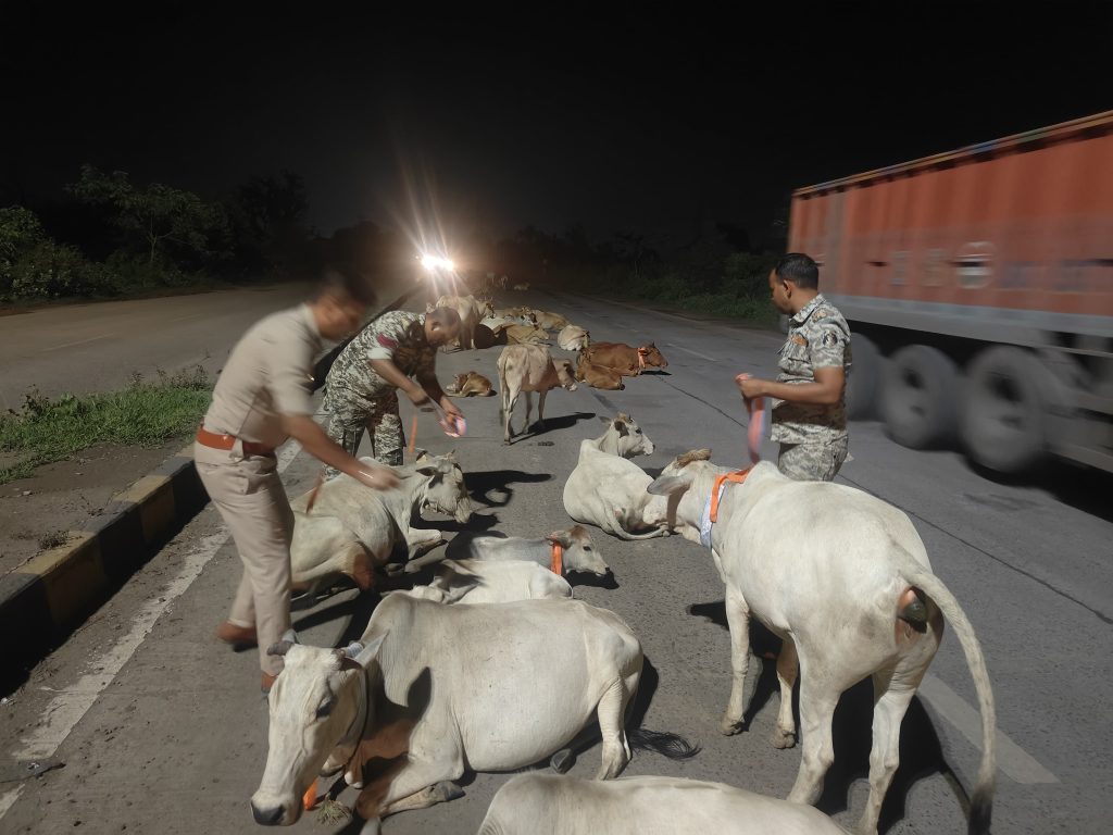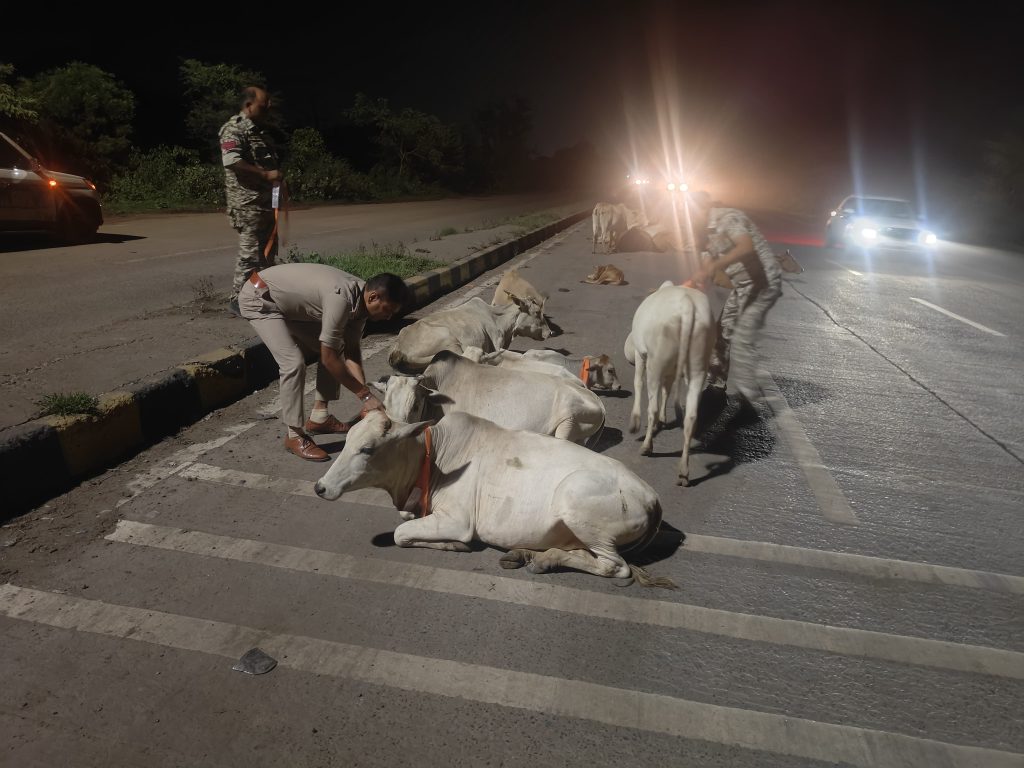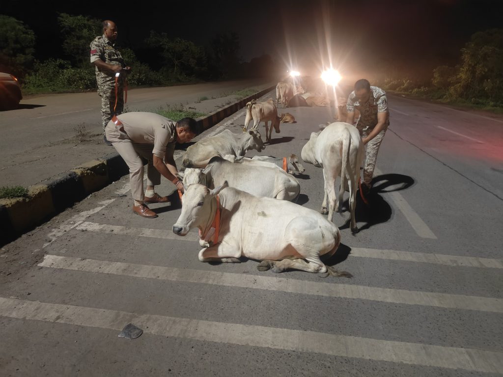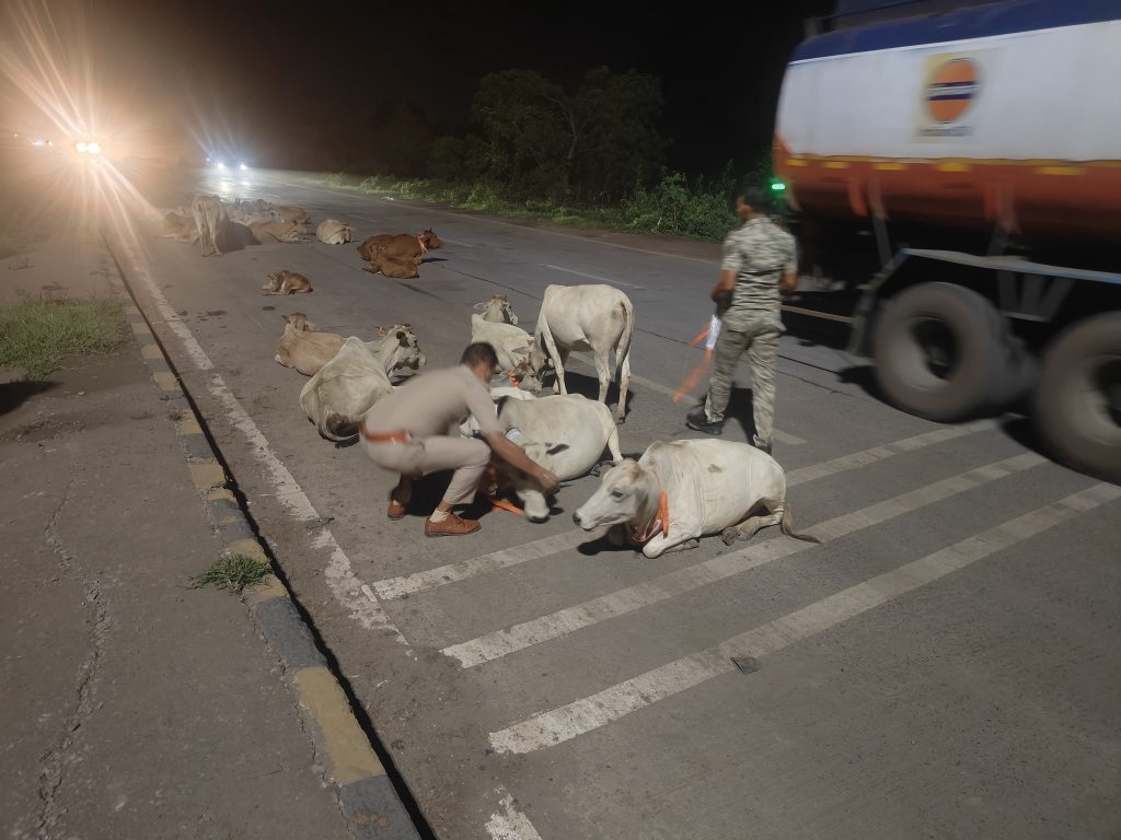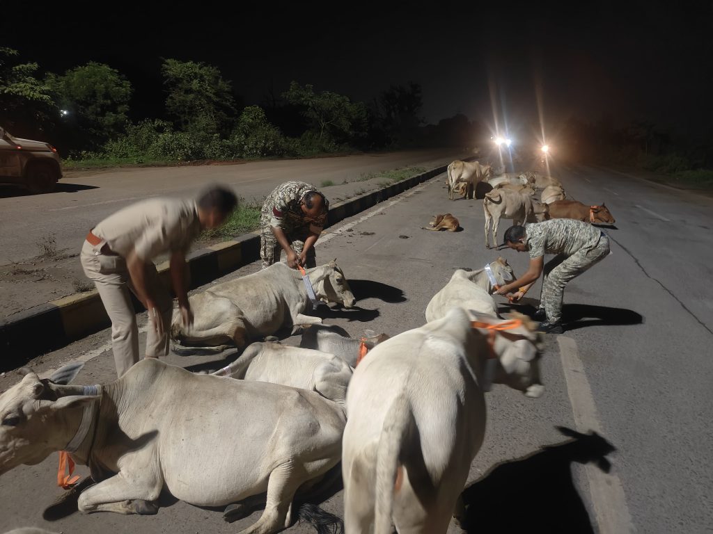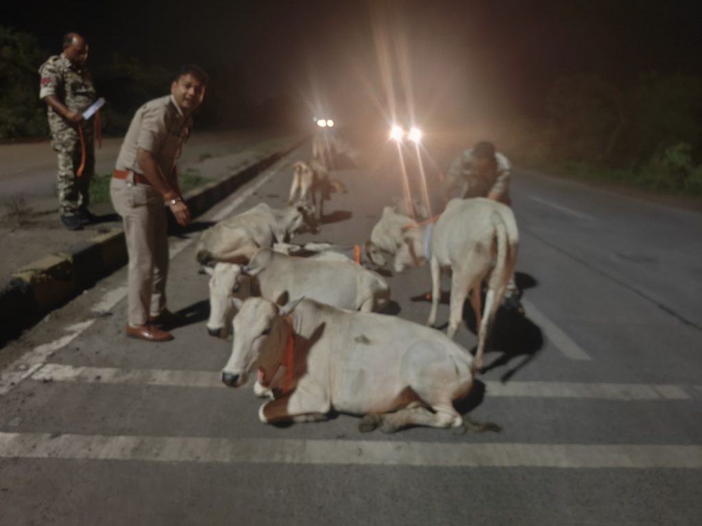 खरसिया – खरसिया थाना प्रभारी राजेश जांगड़े और उनकी सक्रिय पुलिस टीम ने एक बेहद संवेदनशील और सराहनीय पहल की है, जिसमें रात्रि के समय सड़कों पर घूमने वाली गायों की जान बचाने के लिए उनके शरीर पर रेडियम पट्टियाँ लगाई जा रही हैं। इस कार्य का उद्देश्य रात्रि में सड़क दुर्घटनाओं को रोकना और गौवंशों की रक्षा करना है।