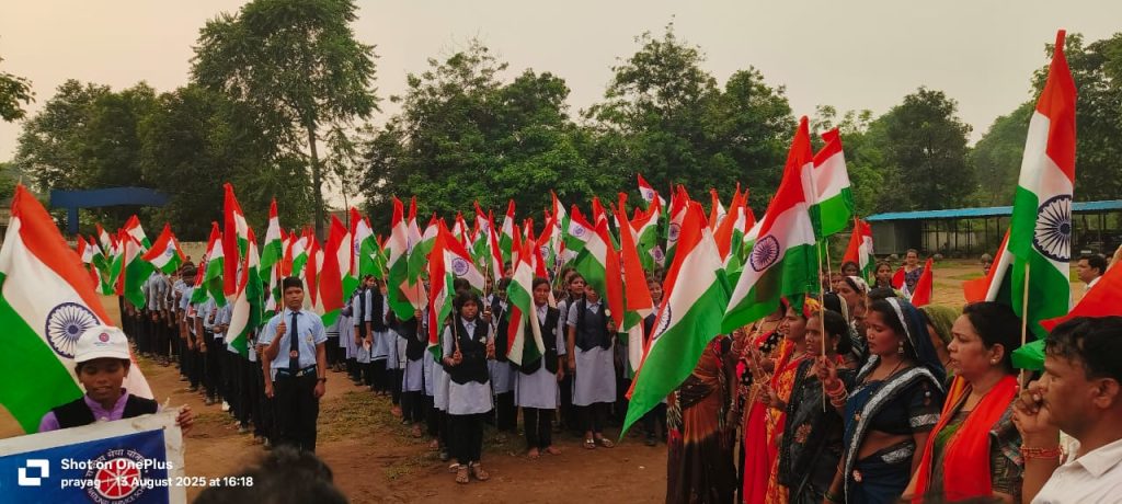 गांव के नागरिकों, स्कूल के छात्र-छात्राओं, जनप्रतिनिधियों एवं भाजपा कार्यकर्ताओं की उपस्थिति में आयोजित इस यात्रा में आत्मानंद स्कूल के विद्यार्थी एवं शिक्षकगण भी शामिल रहे। सभी ग्रामवासी और बच्चे तिरंगा हाथों में लेकर भारत माता की जय और वंदे मातरम के नारों के साथ डीजे की धुन पर पूरे गांव में देशभक्ति का संदेश फैलाते दिखे।
