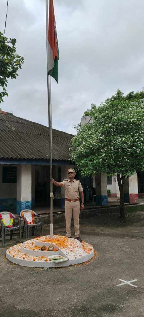 इसी क्रम में जिले के सभी थाना एवं चौकियों में थानाध्यक्षों ने परंपरा का निर्वहन करते हुए ध्वजारोहण किया। विभिन्न स्थानों पर आयोजित समारोहों में स्कूली बच्चों, जनप्रतिनिधियों एवं स्थानीय नागरिकों ने बढ़-चढ़कर हिस्सा लिया। तिरंगे के सम्मान और राष्ट्रीय एकता का संदेश जन-जन तक पहुंचाते हुए, पूरे जिले का माहौल देशभक्ति के रंग में रंगा नज़र आया।