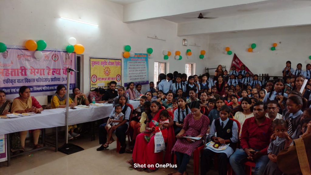 कार्यक्रम के दौरान स्वास्थ्य विभाग की ओर से विशेष स्वास्थ्य जांच शिविर का आयोजन किया गया।133 किशोरी बालिकाओं का हीमोग्लोबिन (HB) और सिकल सेल परीक्षण किया गया।10 गंभीर कुपोषित बच्चों एवं 20 मध्यम कुपोषित बच्चों की पहचान कर उनका स्वास्थ्य परीक्षण किया गया।9 बीमार बच्चों की जांच कर आवश्यक दवाइयाँ उपलब्ध कराई गईं।साथ ही 46 महिलाओं का स्वास्थ्य परीक्षण भी किया गया।इस दौरान स्वास्थ्य विभाग ने पोषण, एनीमिया मुक्त भारत और मातृ-शिशु स्वास्थ्य से जुड़ी योजनाओं की जानकारी भी दी।
