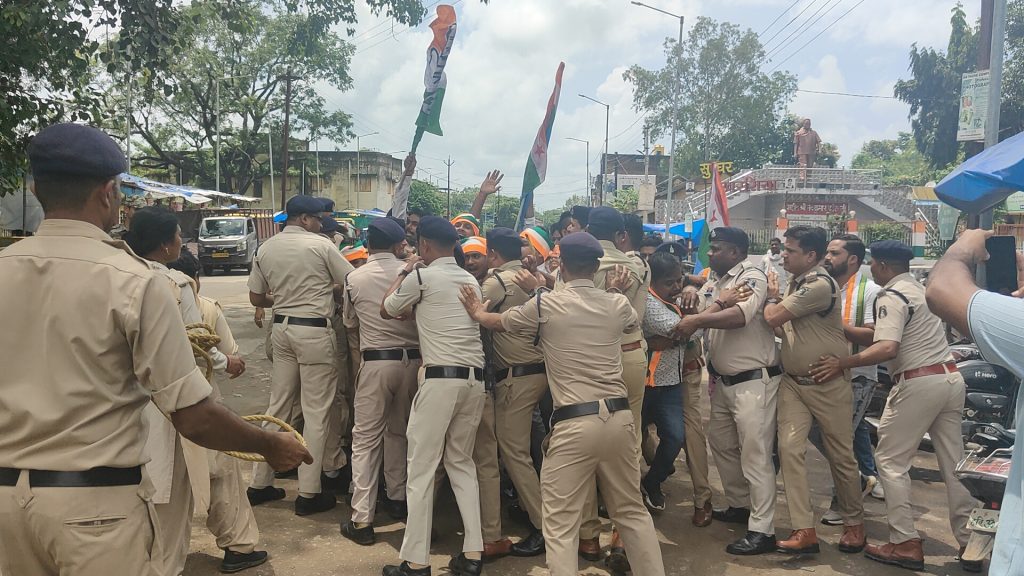 खरसिया में खाद संकट को लेकर कांग्रेस का प्रदर्शन, सीएम से मिलने पहुंचे नेताओं को पुलिस ने रोका – कई हिरासत में
