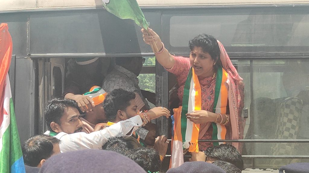 जब पुलिस ने उन्हें आगे बढ़ने से रोका, तो कांग्रेस नेताओं ने वहीं धरना देकर नारेबाजी शुरू कर दी