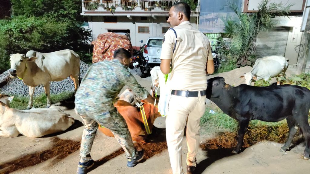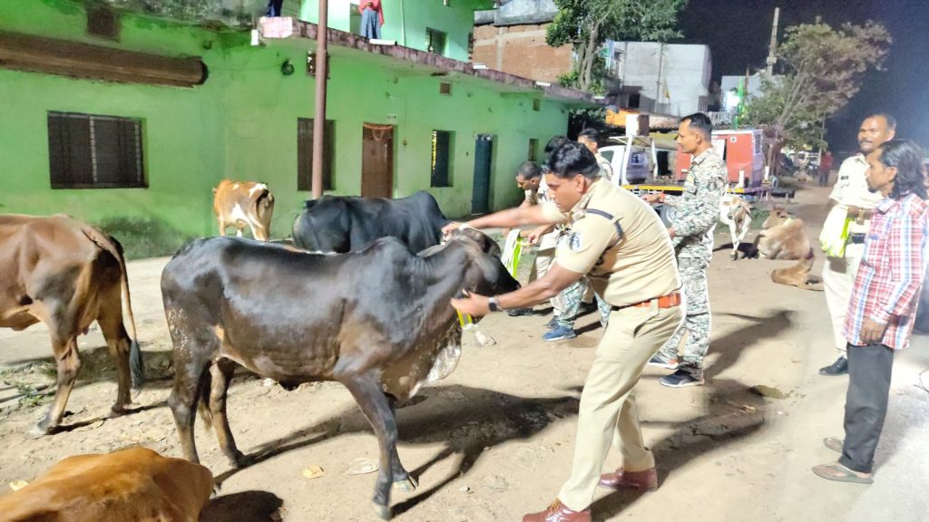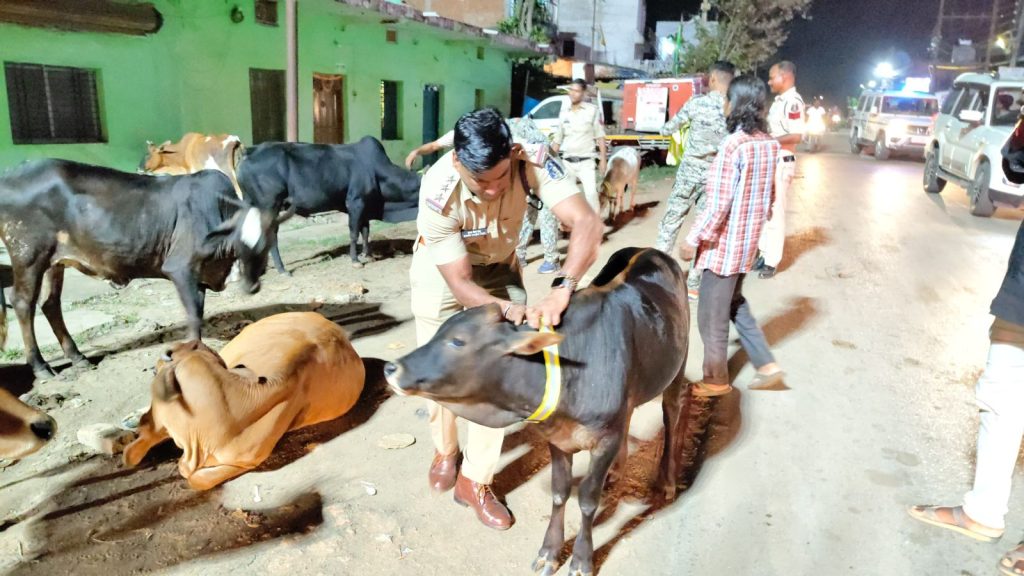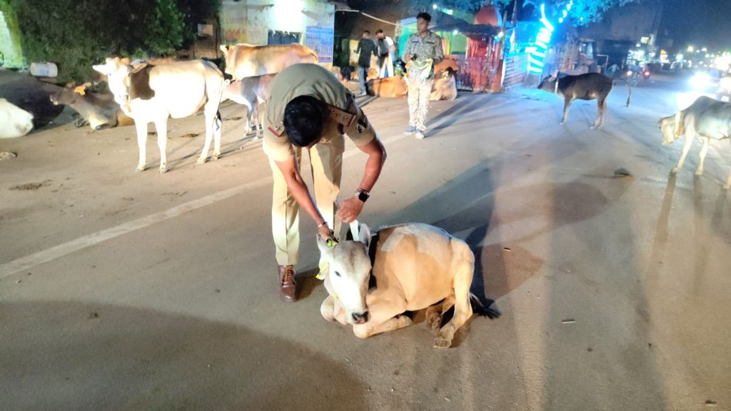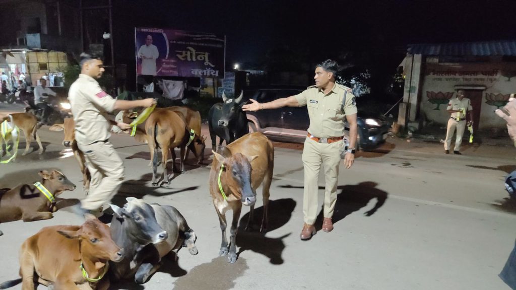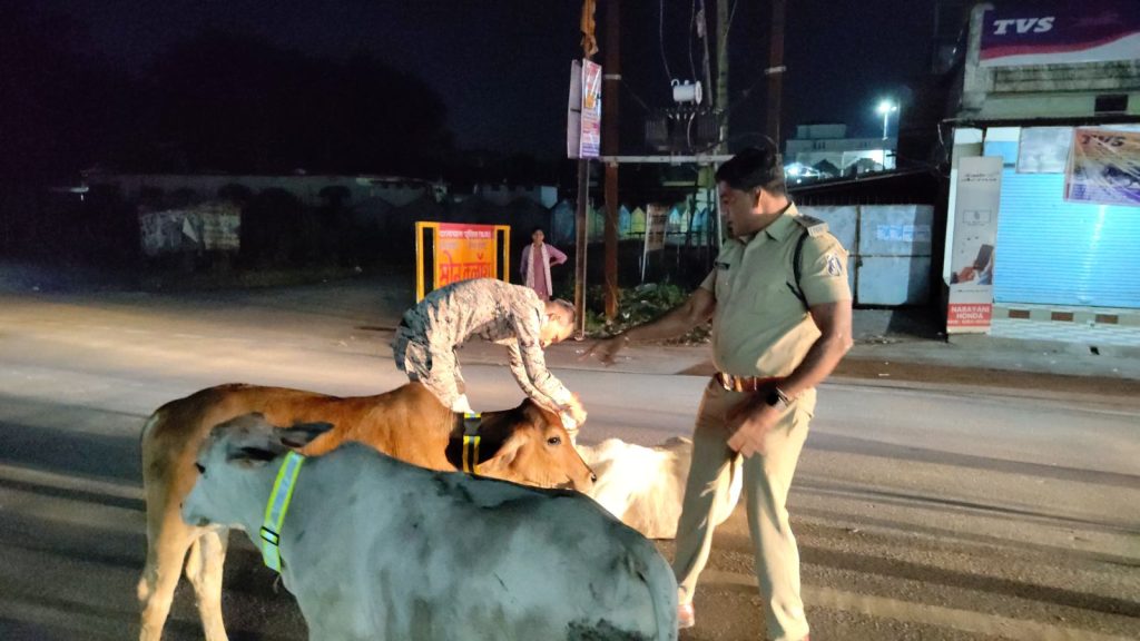 आवारा मवेशियों के गले में लगाए गए रेडियम कॉलर टैग, इंस्पेक्टर गौरव साहू की पहल की हो रही जमकर सराहना
