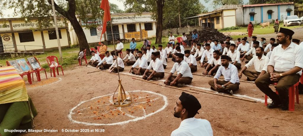 कल दिनाँक 5/10/2025 दिन रविवार को भूपदेवपुर मंडल में संघ की शताब्दी वर्षगांठ के उपलक्ष्य में पथ संचलन और शस्त्र पूजन का आयोजन किया गया बहुत ही उत्साह के साथ युवाओ व संघी भाईयों ने कार्यक्रम भाग लिया जिसमे गांव के माताओं न फूल वर्षा कर संघियो का स्वागत किये पथ संचलन को तुरी पारा से लेकर बिलासपुर स्कूल प्रांगड़ में विश्राम दिया गया तत्पश्चात बौद्धिक कार्यक्रम में मुख्य अतिथि श्री राधे श्याम डनसेना जी सेवानिवृत प्राचार्य निवास ग्राम दर्री मुख्य वक्ता के रूप में श्री भरत साहू जी जीएसटी इंस्पेक्टर रायगढ़ जिला सह करवाह विशेष अतिथि श्री खगेश्वर साहू जी शिक्षक खरसिया खंड के खंड कारवाह सहयोगी श्री मनोज साहू जी रेलवे कर्मचारी खरसिया खंड के करवाह मुख्य शिक्षक शिवा वैष्णव कंप्यूटर सेंटर खरसिया खंड के खंड शारीरिक प्रमुख संतोष डनसेना चिकित्सा प्रार्थना खरसिया खंड के खंड सेवा प्रमुख व मंडल पालक केसर चंद साहू किसान भाई गीत खरसिया खंड के खंड किसान वर्ग प्रमुख,श्री मनीष चौहान प्राइवेट संस्था शिक्षक खरसिया खंड के भूपदेवपुर मंडल का मंडल कार्यवाह,खेम कुमार साहू भूपदेवपुर मंडल शाखा प्रबंधक एवं पूर्व महामंत्री चपले मंडल भाजपा, कार्यक्रम में हमारे भूपदेवपुर थाना के पुलिस बंधुगण एवं आसपास के वरिष्ठ जन के विशेष सहयोग से यह कार्यक्रम में विस्तार मिला