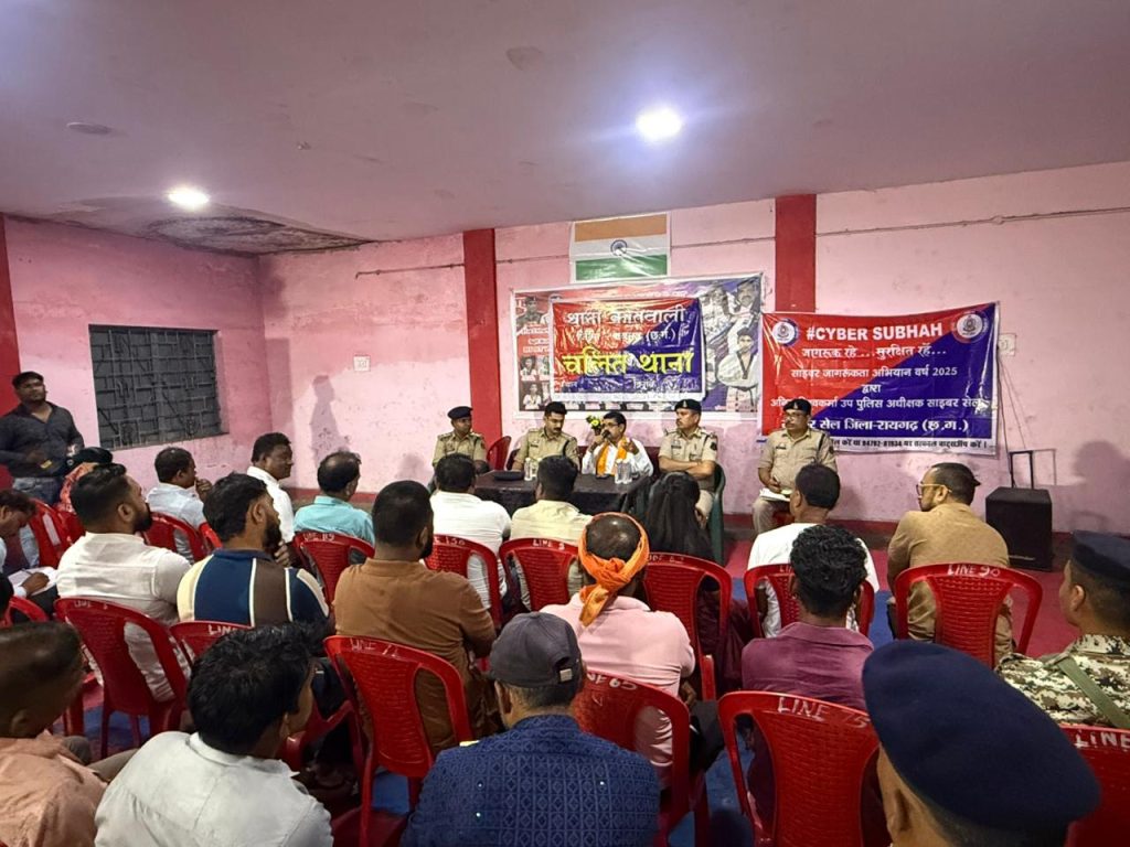 रायगढ़, 8 अक्टूबर। पुलिस अधीक्षक दिव्यांग कुमार पटेल के निर्देशन में रायगढ़ कोतवाली पुलिस द्वारा साइबर जागरूकता एवं नागरिक सम्मान कार्यक्रम का आयोजन पुलिस सामुदायिक भवन में किया गया।कार्यक्रम में जनप्रतिनिधियों की मौजूदगी में नागरिकों को साइबर अपराध से बचाव के उपाय बताए गए और सामाजिक क्षेत्र में उत्कृष्ट कार्य करने वालों को सम्मानित किया गया।कार्यक्रम में नगर पुलिस अधीक्षक मयंक मिश्रा, उप पुलिस अधीक्षक (साइबर सेल) अनिल विश्वकर्मा, नगर निगम सभापति डिग्री लाल साहू, थाना प्रभारी कोतवाली निरीक्षक सुखनंदन पटेल तथा उप निरीक्षक ऐनु देवांगन मंचासीन रहे।