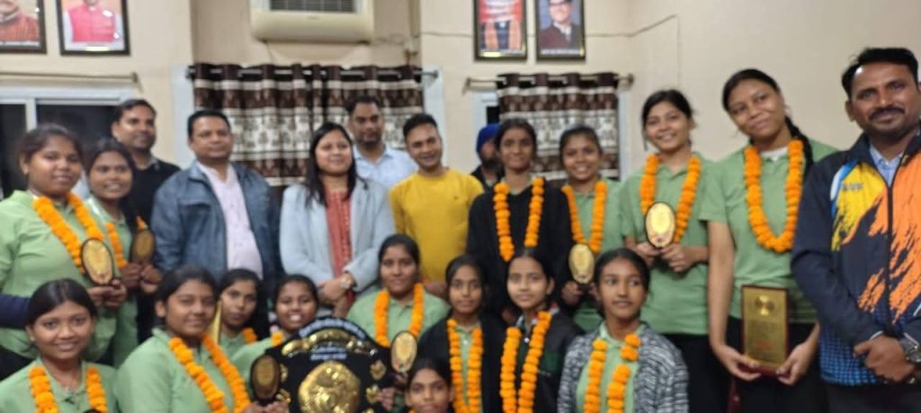 जिला स्तरीय सांसद खेल महोत्सव में खरसिया प्रथम विजेता खिलाड़ियों का किया गया भव्य सम्मान