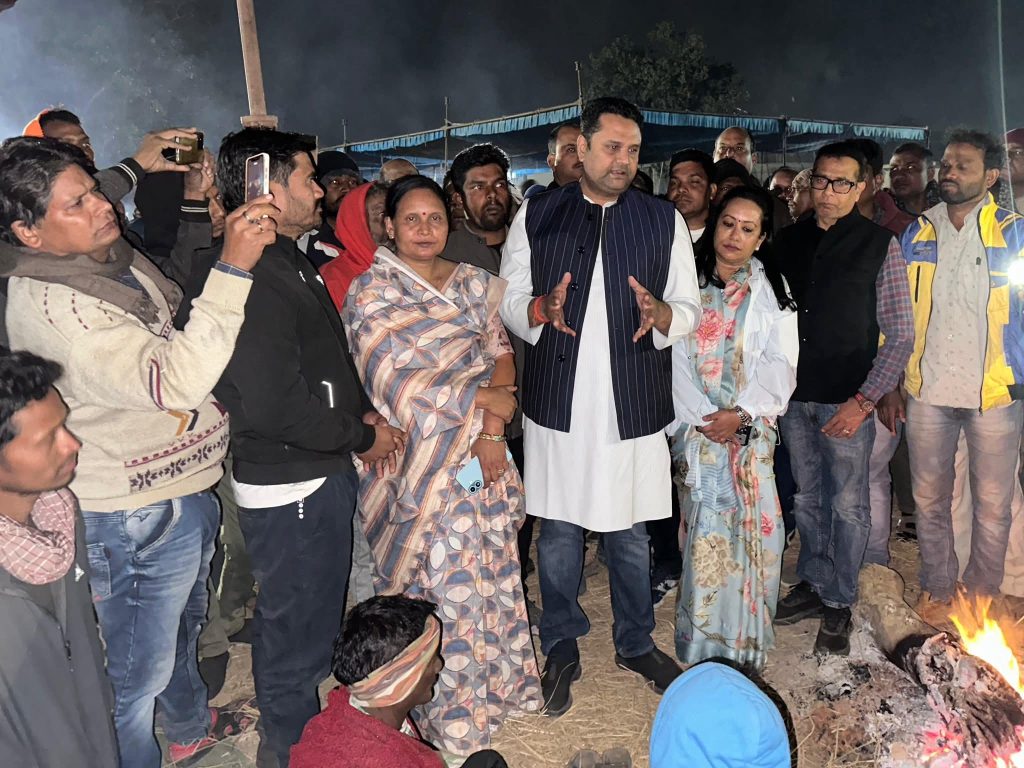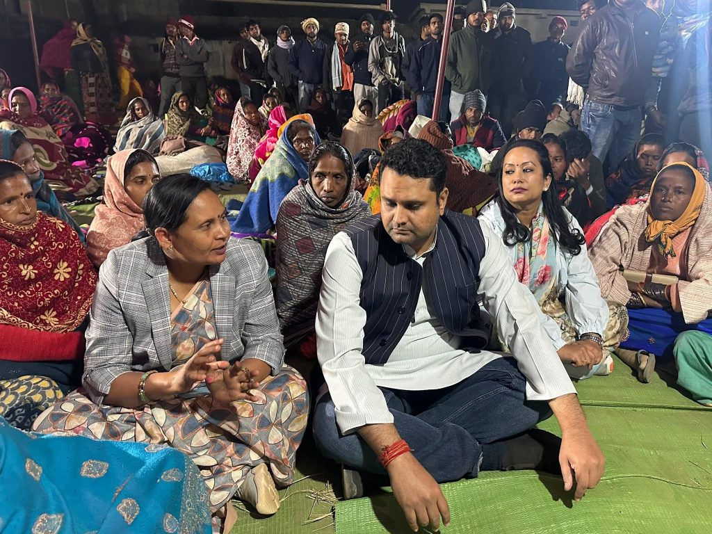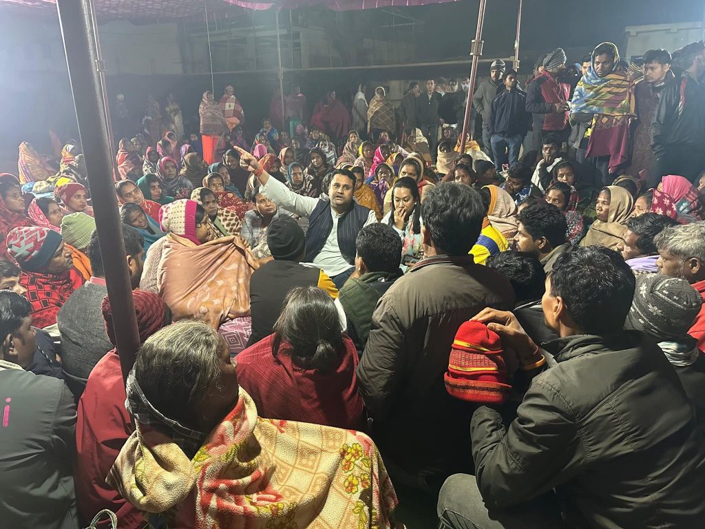 धौराभांठा की ठंडी रात में उम्मीद की गर्माहट — प्रभावित ग्रामीणों के बीच पहुंचे उमेश पटेल, जनसंघर्ष को दिया मजबूत सहारा