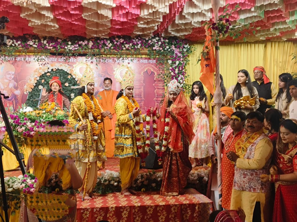 कथा के क्रम में साध्वी उमा जी ने बताया कि गुरु विश्वामित्र के साथ यज्ञ की रक्षा हेतु जाते समय भगवान श्रीराम की आयु लगभग 16 वर्ष थी तथा उनके साथ लक्ष्मण जी भी उपस्थित थे। गुरु की आज्ञा का पालन करते हुए श्रीराम ने ताड़का और सुबाहु का संहार किया तथा मारीच को समुद्र की दिशा में भेज दिया। इसके उपरांत मिथिला आगमन के दौरान अहिल्या उद्धार का प्रसंग प्रस्तुत किया गया, जिसे सुनकर श्रोता भावुक हो उठे।जनकपुर में आयोजित शिवधनुष यज्ञ में अनेक राजाओं के असफल प्रयासों के बीच भगवान श्रीराम ने गुरु आज्ञा से शिवधनुष को उठाकर तोड़ दिया। इसके साथ ही यह स्पष्ट हो गया कि जनकनंदिनी माता सीता के योग्य वर केवल श्रीराम ही हैं। विवाह की मंगल तैयारियों के साथ अयोध्या और मिथिला के बीच पावन वैवाहिक संबंध स्थापित हुए।इस अवसर पर अयोध्या के चारों राजकुमारों — श्रीराम, भरत, लक्ष्मण और शत्रुघ्न — का विवाह मिथिला की चारों राजकुमारियों — सीता, मांडवी, उर्मिला और श्रुतकीर्ति — के साथ संपन्न हुआ। वैदिक मंत्रोच्चार, देवताओं की पुष्पवर्षा और श्रद्धालुओं के जयघोष के बीच चारों मंडपों में विवाह संस्कार सम्पन्न हुए।