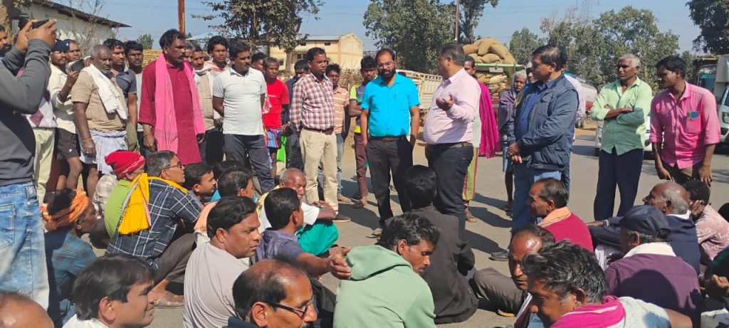 धान खरीदी की मांग पर किसानों का चक्का जाम , तहसीलदार की समझाइश के बाद खुला जाम