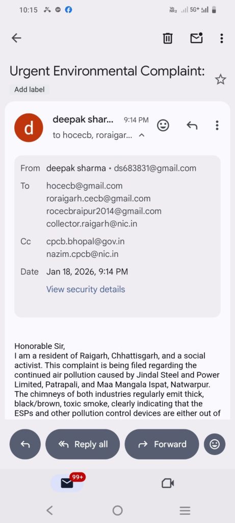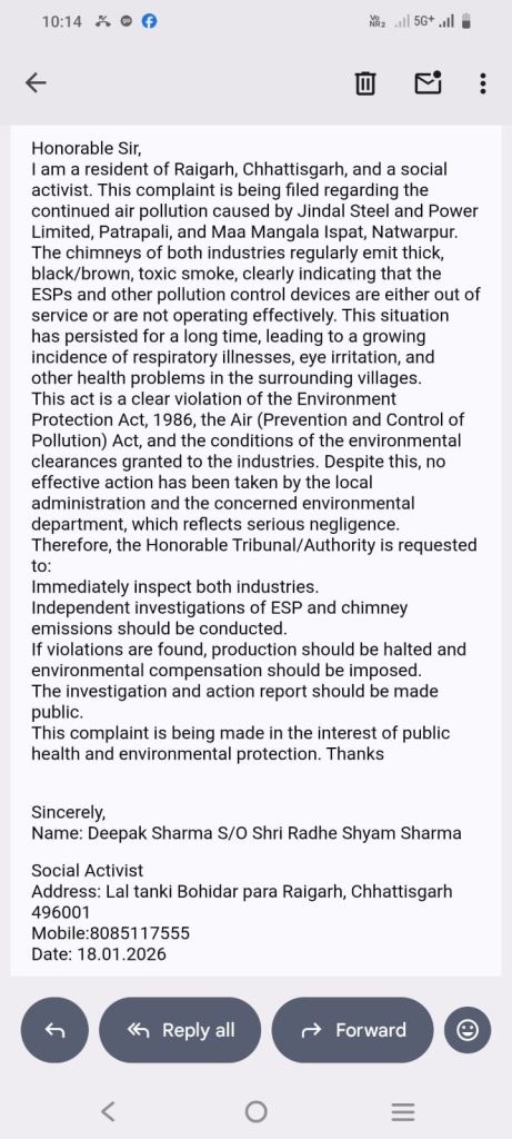 रायगढ़ में खुलेआम ज़हर फैलता उद्योग, खामोश प्रशासन और बीमार होती जनता