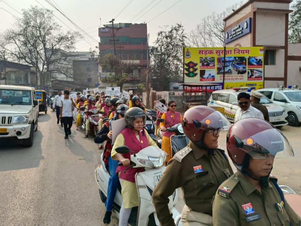 The rally was led by DSP Sadhna Singh and witnessed active participation from women police officers and staff, along with members of the renowned women’s organization “Divya Shakti Raigarh.”