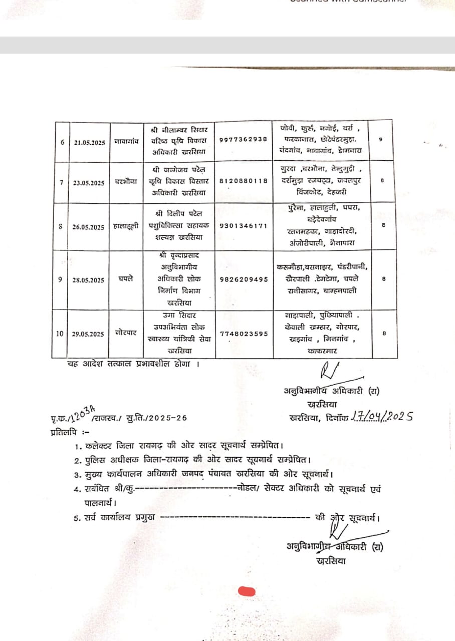 खरसिया मुख्यमंत्री विष्णु देव साय के सुशासन तिहार के अंतर्गत दिनांक 25 मई को, खरसिया विधानसभा के हालाहुली क्षेत्र में…
