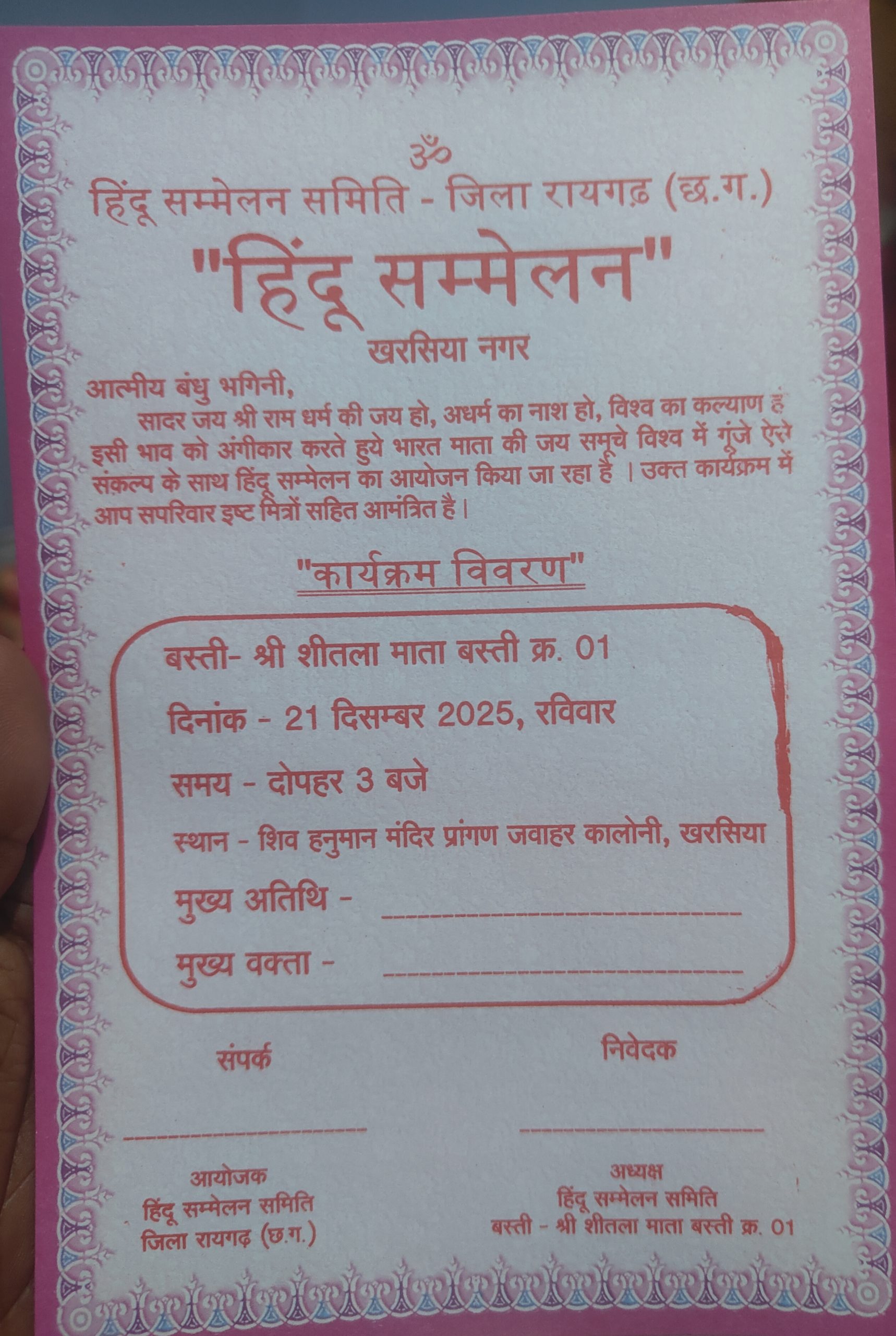 खरसिया में होगा भव्य हिंदू सम्मेलन, धर्म-संस्कृति और राष्ट्र चेतना का संदेश खरसिया।सनातन धर्म, भारतीय संस्कृति और राष्ट्र चेतना को…