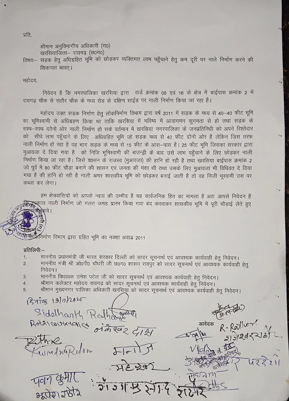 खरसिया में अधिग्रहित भूमि छोड़कर गलत स्थान पर नाली निर्माण का आरोप, क्षेत्रवासी पहुंचे SDM कार्यालय खरसिया। नगर पालिका खरसिया…